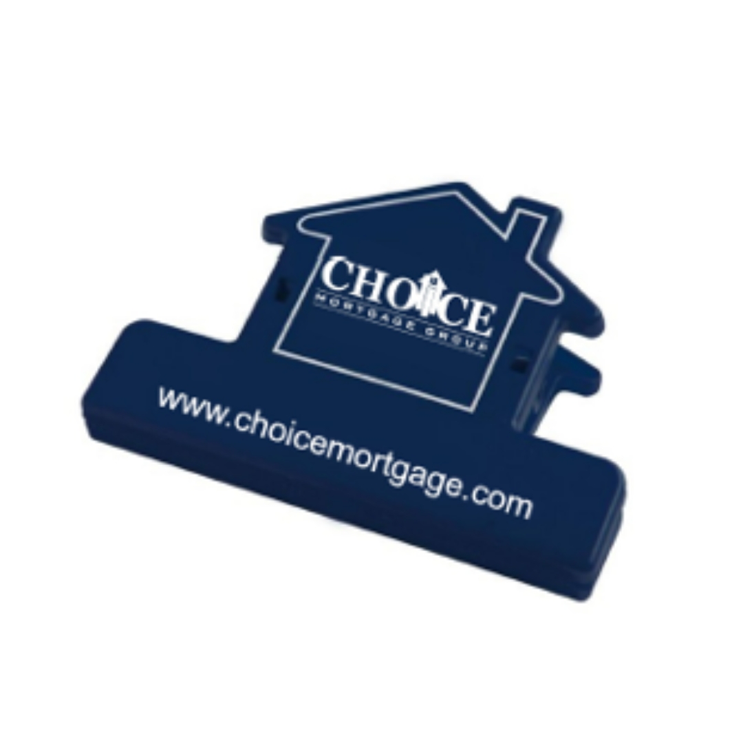 Sturdy house-shaped clip for sealing food bags or organizing papers. 250 minimum quantity.