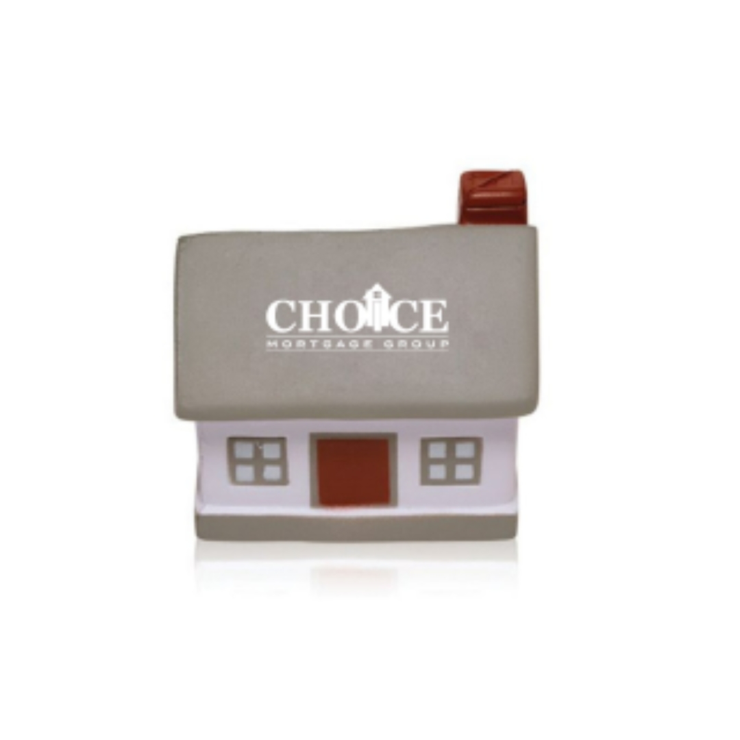 Foam stress ball shaped like a house for fun and relief. 100 minimum quantity.